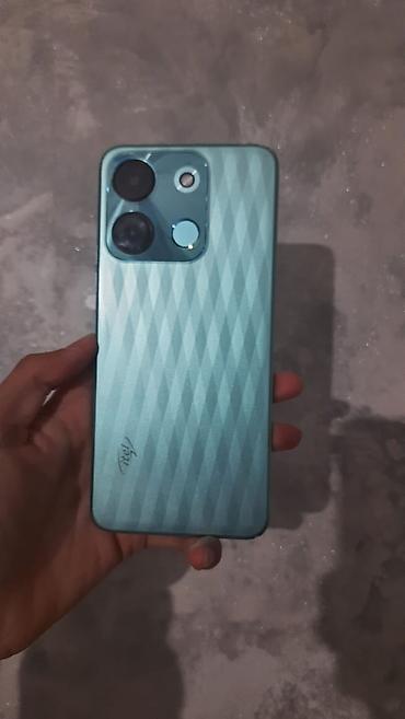 Смартфон в бирюзовом цвете с фактурной задней крышкой «ромбы». Экран с