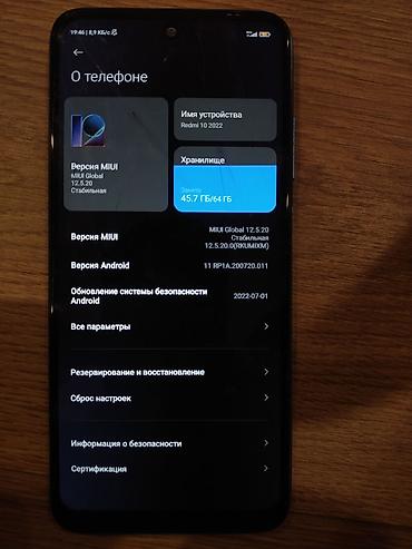 - Память: 64 ГБ встроенной (на фото – занято ~45,7 ГБ).