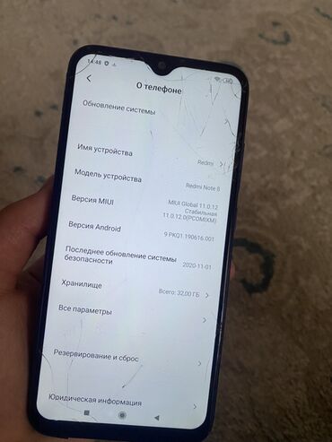 Смартфон Xiaomi Redmi Note 8 (модель M1908C3JG), синий градиент. Есть трещины на задней панели и на экране