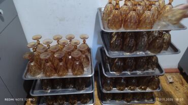 Продаю Посуду б/у для кафе: Рокс стаканы д/виски 12 шт. .,стакан д/ сока 35 шт. сом.,стакан гранён.30 шт.по 50 сом.,рюмка 70 гр. 100 шт.-35 сом.,графин 250гр. 8 шт.- 100 сом./ шт.,графин 500 гр. 4 ...
