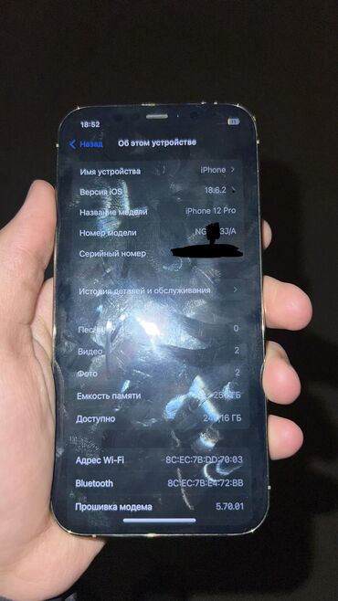 IPhone 12 pro 128GB 86%🔋 Все родное ✅ Зарегестрирован✅ Full work ✅ Единственный минусы есть трещинка на блоке камер на работу не влияет цена вопроса 500-1к