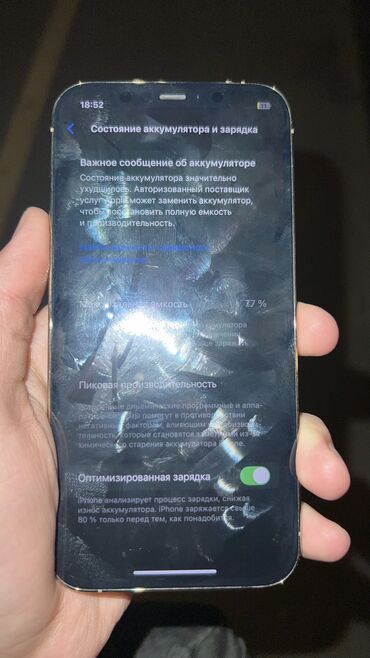 Продаю 12про 128гб 87акб все работает идеально Все оригинал отлично работает на экране есть скол не заметный на фото видно на работу вообще не влияет