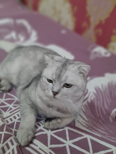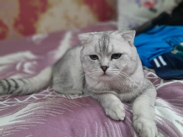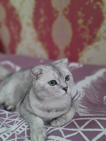 На фото — реальная кошка с мягким серебристым окрасом и сложенными ушками, позирующая дома на диване и пледе.прививка есть,приучен к лотку.+лоток,расчёска,миска,шампунь, домик,корм в придачу