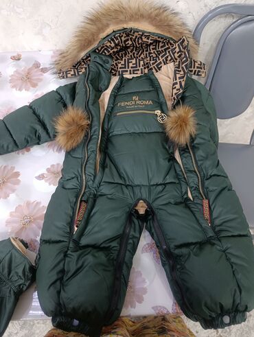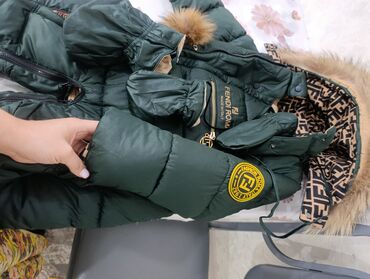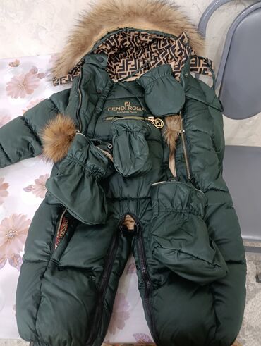 Детский зимний комбинезон-конверт - Цвет: нежно‑зеленый с принтом