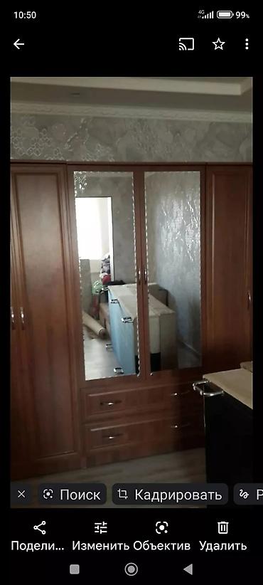 - Трёх- или четырёхдверный шкаф-купе/распашной с зеркальными фасадами по центру и выдвижными нижними ящиками.
