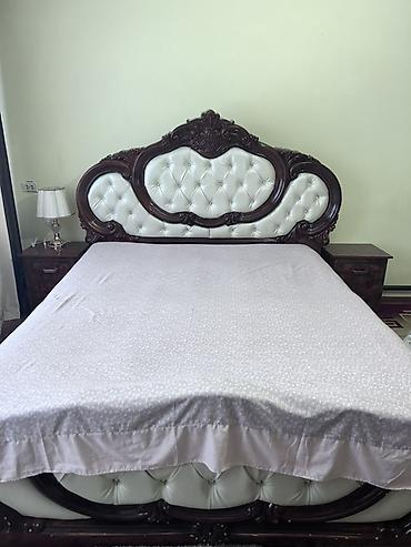 Спальный гарнитур в классическом стиле с богатым декором под корень дерева.