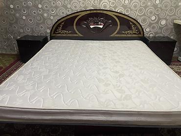 - Матрас в комплекте: пружинный, стандартной высоты, стеганый чехол со светлым жаккардовым рисунком.