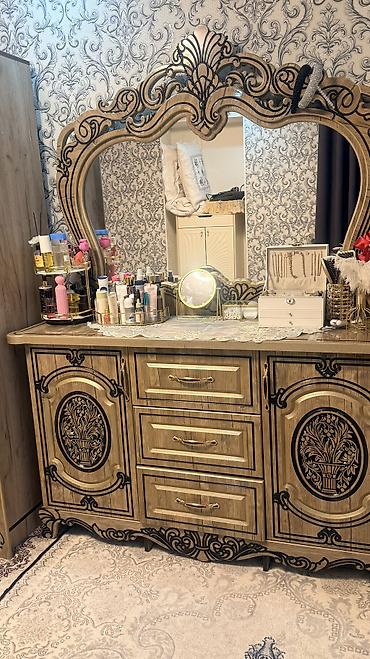 Стиль: неоклассика/барокко, идеально для интерьерa с узорчатыми обоями и светлой палитрой. Подойдет для тех, кто ищет выразительный, декоративный комплект мебели в едином дизайне.