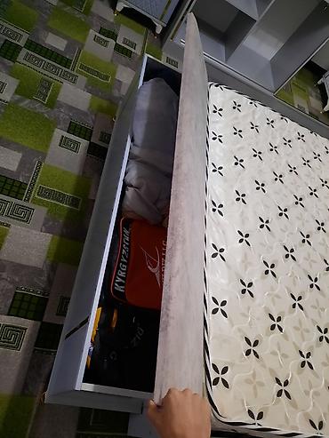 - Кровать двуспальная с мягким изголовьем и изножьем. Под матрасом — вместительная выдвижная тумба/ниша для хранения постельных принадлежностей.