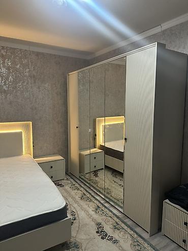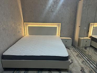 - Кровать двуспальная с мягким изголовьем и встроенной LED‑подсветкой по периметру спинки.