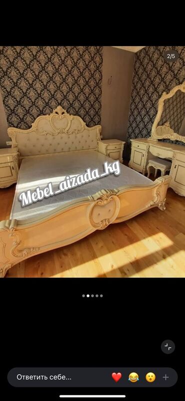 Кровать двуспальная в классическом стиле, модель “Магдалена”. - Размер спального места: ориентировочно 180 × 200 см (визуально — king/queen). - Материал каркаса: массив/МДФ с декоративными резными...