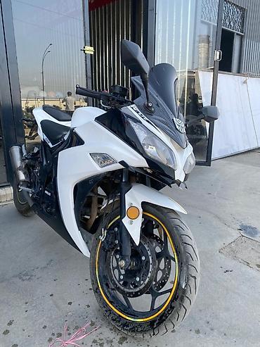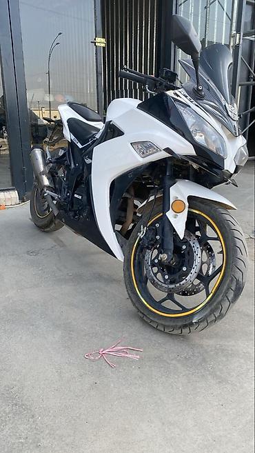 Продаётся спортивный мотоцикл в облике спортбайка, бело-чёрного цвета, в хорошем техническом и внешнем состоянии. Мотоцикл ухоженный, резвый, приятно управляется, подходит как для города, так и для загородных поездок.