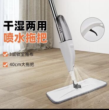 - Встроенный резервуар для воды/средства: распыление тонкой мятной струёй одним нажатием на рукоятке.