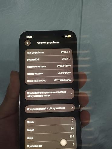 📱 iPhone 12 Pro 256 GB Продаю iPhone 12 Pro. 🔧 Камера и дисплей заменены на оригинальные. 🔋 Аккумулятор — 79%. Память 256 ГБ. Телефон работает стабильно, Face ID, True Tone — всё функционирует. В...