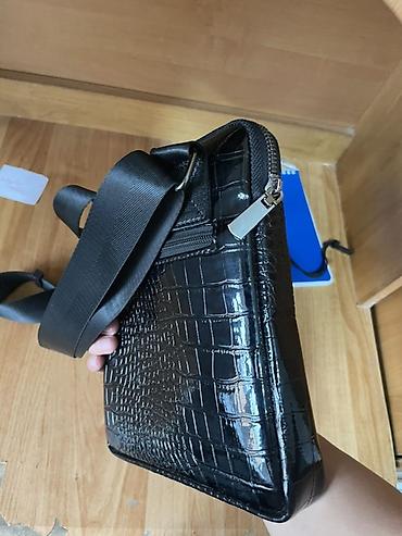 Сумка мужская через плечо, черная - Материал: фактурная эко-кожа под рептилию. - Формат: компактная вертикальная сумка для города/путешествий. - Основное отделение на молнии. - Спереди: большой на...