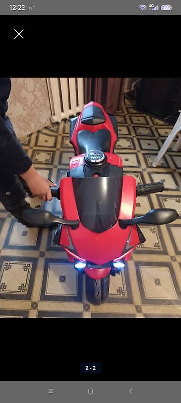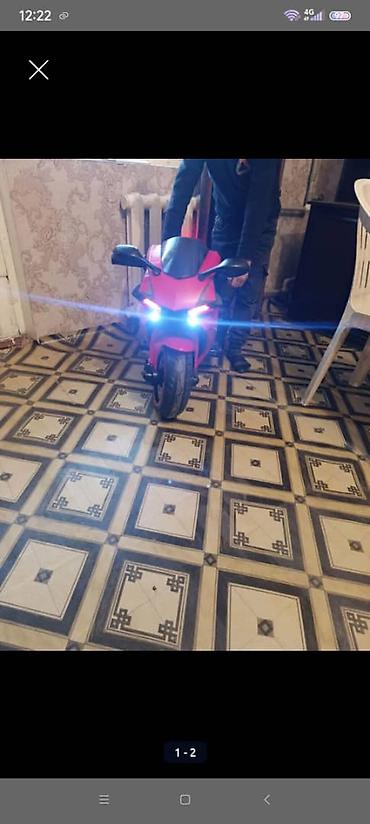 Детский электрический мотоцикл HP2 с тремя колесами, разработанный для устойчивости и безопасности. Модель имитирует спортивный мотоцикл и доступна в нескольких цветах: красном, синем и черном, каж...