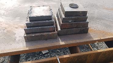 - Примерные размеры по сторонам: от малых до крупных квадратов, набранные стопкой; толщина — массивная (лист тяжелый).