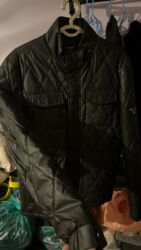 Купил за 4.400 Стеганая мужская куртка-пуховик, черная, с глянцевым эффектом и повторяющимся монограммным узором по всей поверхности. - Прямой крой, длина до бедер. - Высокий утепленный воротник-...
