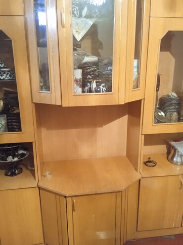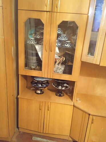 - Несколько витринных шкафов с распашными стеклянными дверцами (фасеты) для посуды и декора.