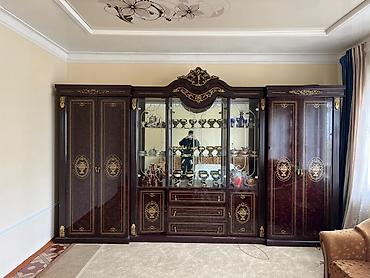 Классическая секционная мебельная стенка из массива/шпона в тёплом оттенке ореха. Комплект состоит из нескольких модулей разной ширины и глубины, которые можно расставлять по стене в нужном порядке...