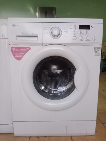 Стиральная машина LG с фронтальной загрузкой, выполненная в белом цвете. Оснащена дисплеем и механическими элементами управления для выбора режимов стирки. Серебристый люк обеспечивает удобный доступ к барабану. Подходит для различных типов тканей и повседневного использования, обеспечивая эффективную стирку в домашних условиях.Надежный вариант для вашей прачечной.