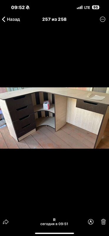 - правая боковая секция с выдвижным ящиком под столешницей;