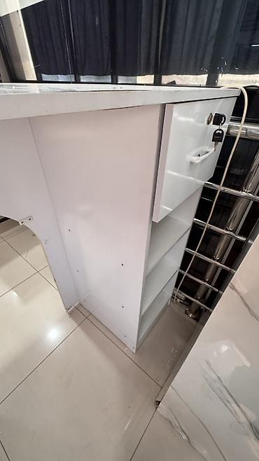 - Глубина столешницы: средняя, удобна для ноутбука/кассы и рабочей зоны.