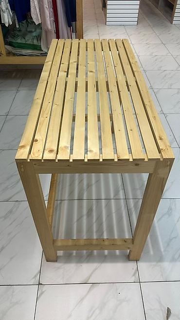 - Конструкция: прямоугольная столешница из продольных рейек на прочной раме; нижняя продольная связка для жесткости.