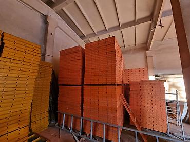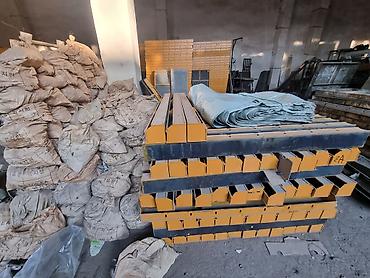 - Щитовая стальная/комбинированная опалубка: крупные партии щитов прямоугольной формы, окраска в жёлтый и оранжевый цвет для удобной маркировки. Щиты с перфорацией под быстрозажимные фиксаторы/замки, окантовка усиленным профилем.