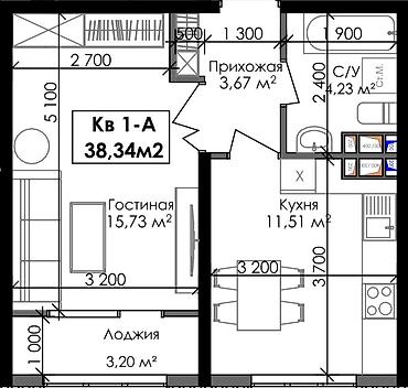 - Общая площадь: 39 м²