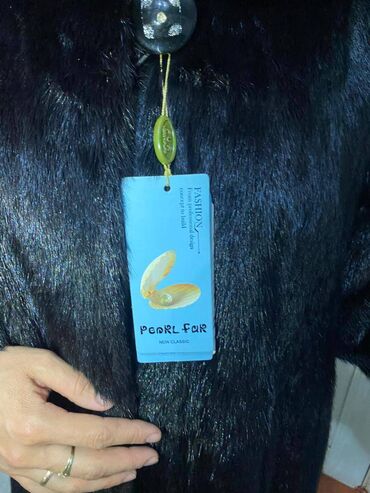 Черная норковая шуба из меха, а также декоративной пуговицей на шее. Шуба принадлежит бренду «Pearl For».