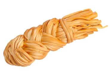 - Традиционный рассольный сыр в форме косички, произвольно сплетённые волокна.