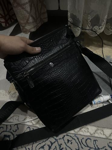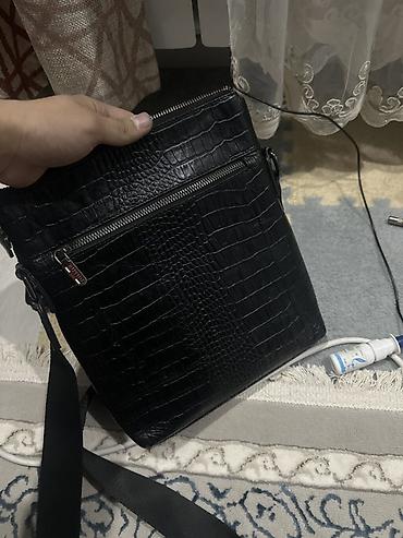 Сумка через плечо, черная, с тиснением под крокодила.