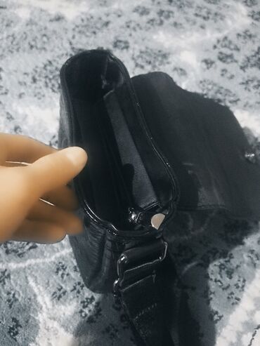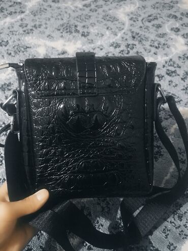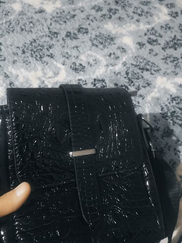 Барсетка из глянцевого материала под крокодила, черного цвета.