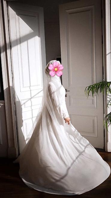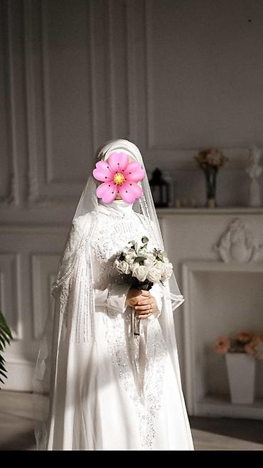 - Комплектация на фото: платье, фата/вуаль, хиджаб (головной платок)