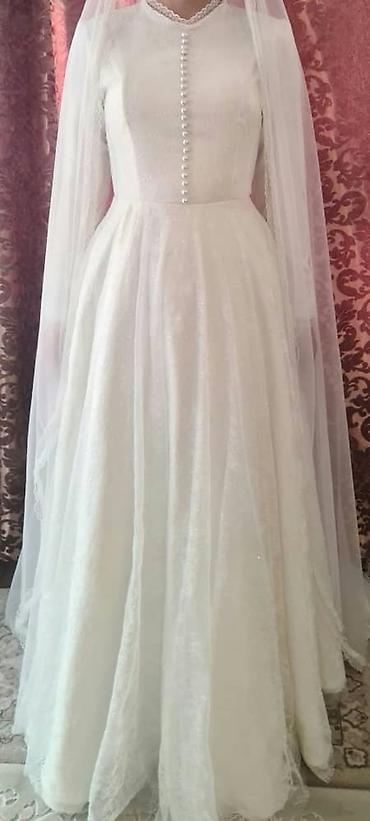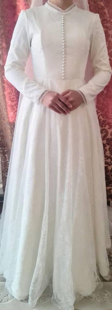 Свадебное платье в классическом стиле с длинными рукавами и высоким