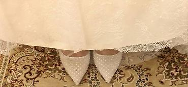 - Детали: мягкая фигурная отделка по краю юбки, воздушная накидка-вуаль/шлейф из тюля.