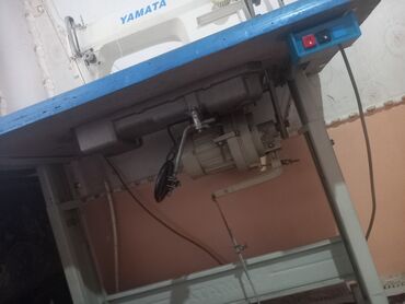 На изображении представлена промышленная швейная машина, вероятно, оверлок, судя по множеству нитей и механизму. На машине виден логотип "YAMATA", что указывает на производителя. Тип оборудования: ...