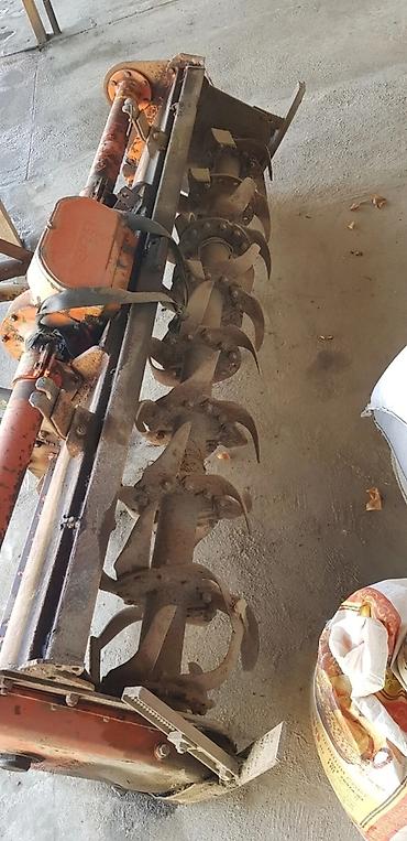 Трактор с навесным оборудованием - Колесный трактор синего цвета с