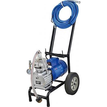 Безвоздушный окрасочный аппарат (электрический) с тележкой на колёсах Комплектация: - насос высокого давления с электродвигателем на раме-тележке - пистолет-распылитель с фильтром и ...
