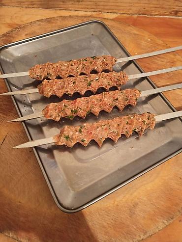 Люля-кебаб на шампурах (сырой фарш, сформованный для жарки)