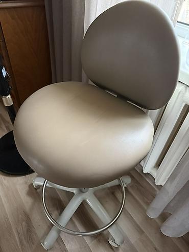 - Эргономичное сиденье и спинка из износостойкого кожзама бежевого цвета.