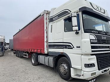 Тягач DAF XF с тентованным полуприцепом/шторой - Марка и модель: DAF XF (седельный тягач) - Кабина: высокая, спальные полки, солнцезащитный козырек, зеркала с электрообогревом/регулировкой - Фары:...