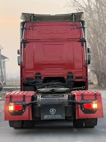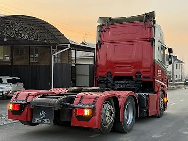- Экстерьер: фирменная окраска с полосами, шильдики Scania и «S», декоративная решетка радиатора