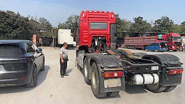 Тягач с полуприцепом-самосвалом для перевозки сыпучих грузов - Марка тягача: Shacman (SX). Кабина второго поколения с высокой крышей, центральной эмблемой S на решётке. - Колёсная формула тягача: ...