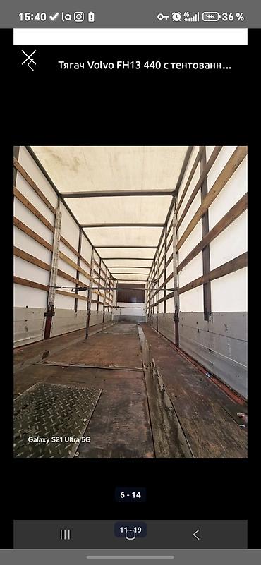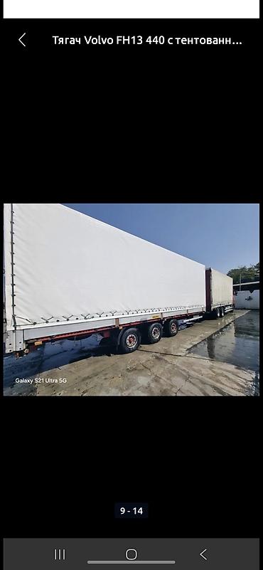 Тягач с полуприцепом тентованный - Марка и модель тягача: Volvo FH (эмблемы и надпись FH на лицевой панели) - Мощность/модификация: обозначение 440 на кабине - Конфигурация: седельный тягач 4x2 - ...