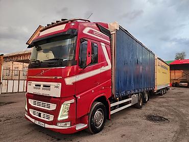 Volvo FH 500 4x2 с тентованным полуприцепом - Тягач Volvo FH (серия FH, шильдик 500) с высоким спальным кабиной - Двигатель 500 л.с. (указано на боковом шильдике), экологический класс L на лобовом...