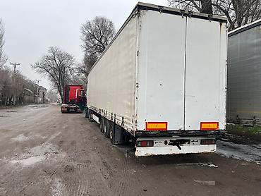 - Полуприцеп: тентованный шторный, задние двустворчатые двери, боковая шторка с фиксаторами, задний брус с фонарями и светоотражающими табличками.