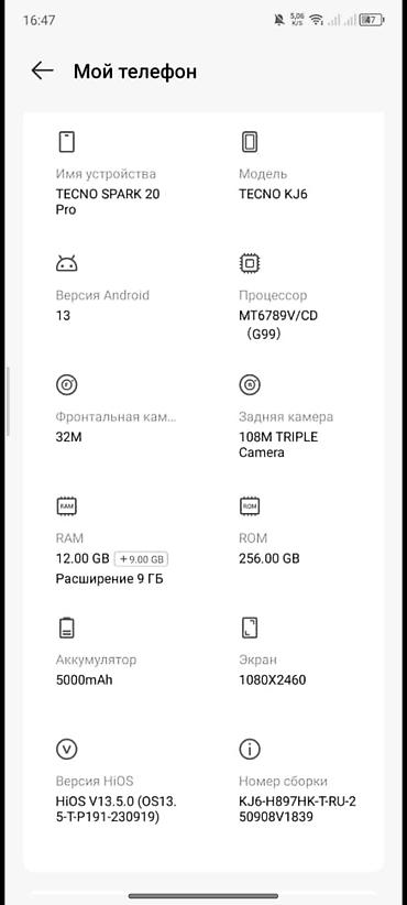 - ОС: Android 13, фирменная оболочка HiOS v13.5.0