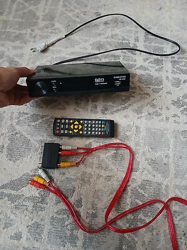 - Серебристый корпус, передняя панель с кнопками управления: меню, громкость, каналы, питание.